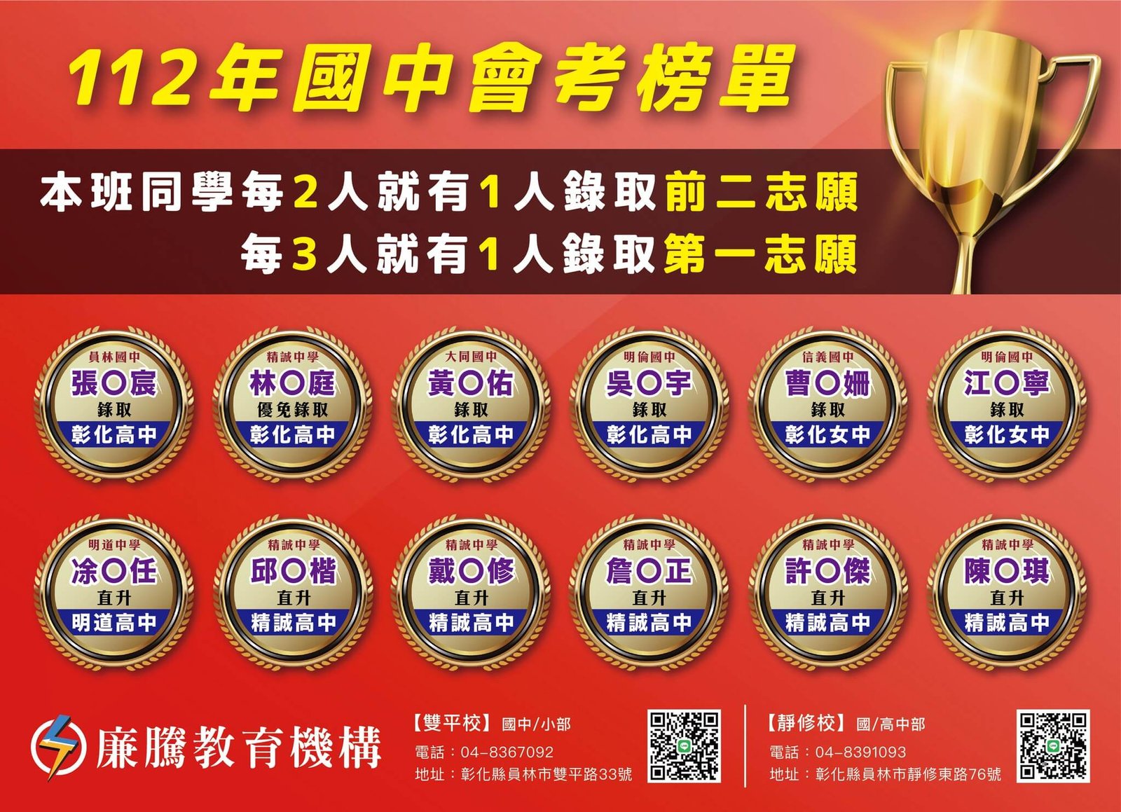 #112會考放榜#專業團隊締造傲人榜單