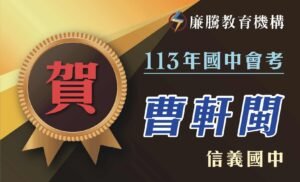 【會考成績】數學A/自然A/英文B++/社會A 🙋🏻♀️蘇苡寍同學有話想說: 謝謝廉騰的所有老師在會考前努力
